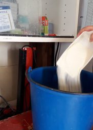 Légende photo: La quantité d’aliment d’allaitement ajoutée est pesée ou bien étalonnée avec un ustensile