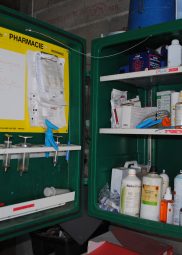 Pour contenir un prolapsus vaginal, des pessaires ou des harnais sont à prévoir. Des gants à usage unique préviennent la transmission d’une maladie infectieuse. Par ailleurs, une réserve de colostrum stockée au congélateur pour complémenter les agneaux qui en ont besoin est une assurance vie pour ces derniers. Biberon et pélican sont également très utiles. Les lampes chauffantes pour un agneau refroidi ou le coin des « biberons » sont à vérifier. Par ailleurs, le thermomètre est indispensable pour décider du traitement d’un animal malade. Des seringues et des aiguilles jetables (jaunes, bleues et roses) sont également stockées. Enfin, un moyen de contention pour réaliser une adoption (case d’adoption, corde…) est également à prévoir.